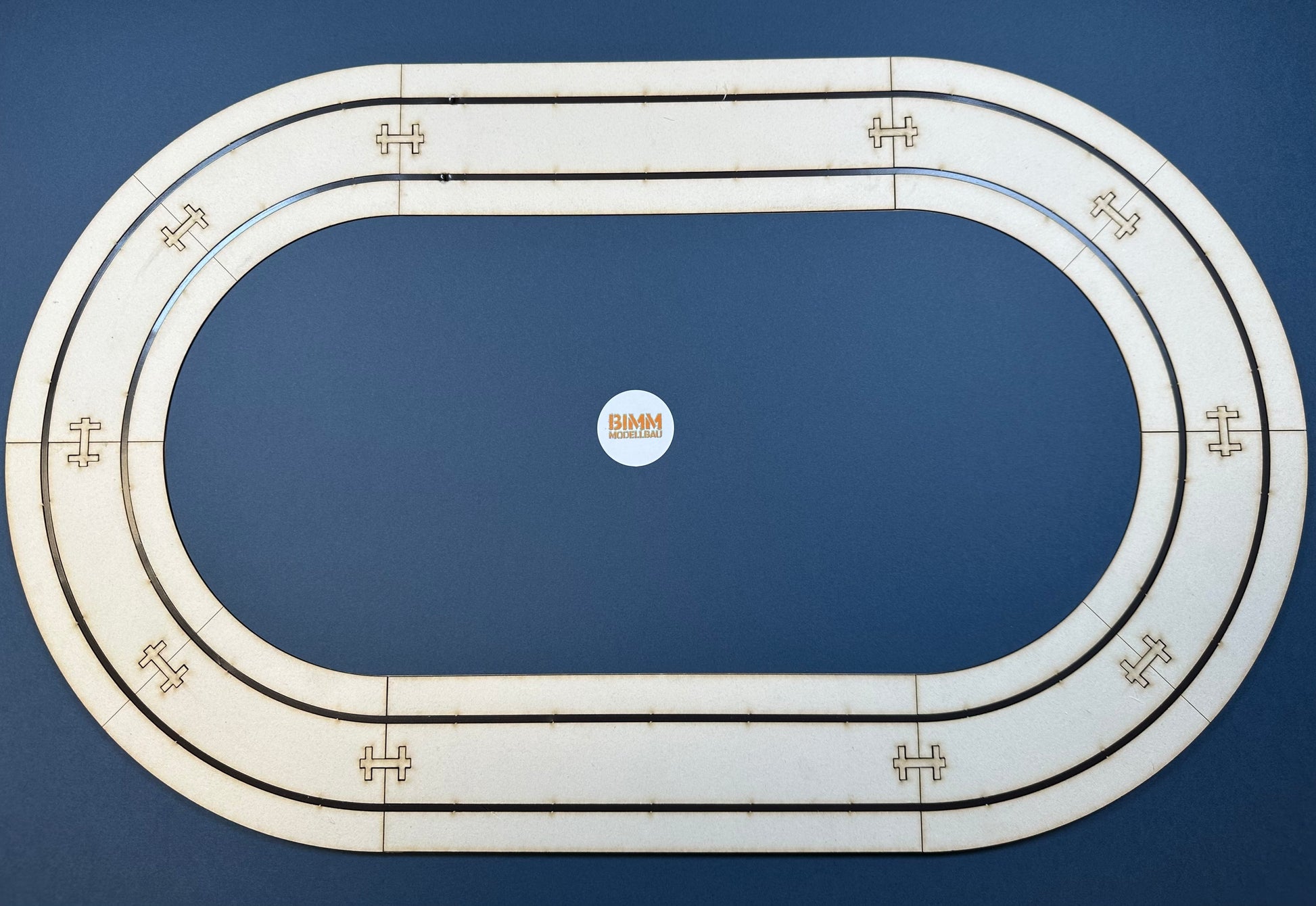 Zusätzlich sind zwei Wendeschleifen enthalten – eine mit 200 mm Außenmaß und eine mit 235 mm Außenmaß – damit du auch auf der zweispurigen Straße wenden kannst, ohne im Kreis fahren zu müssen.