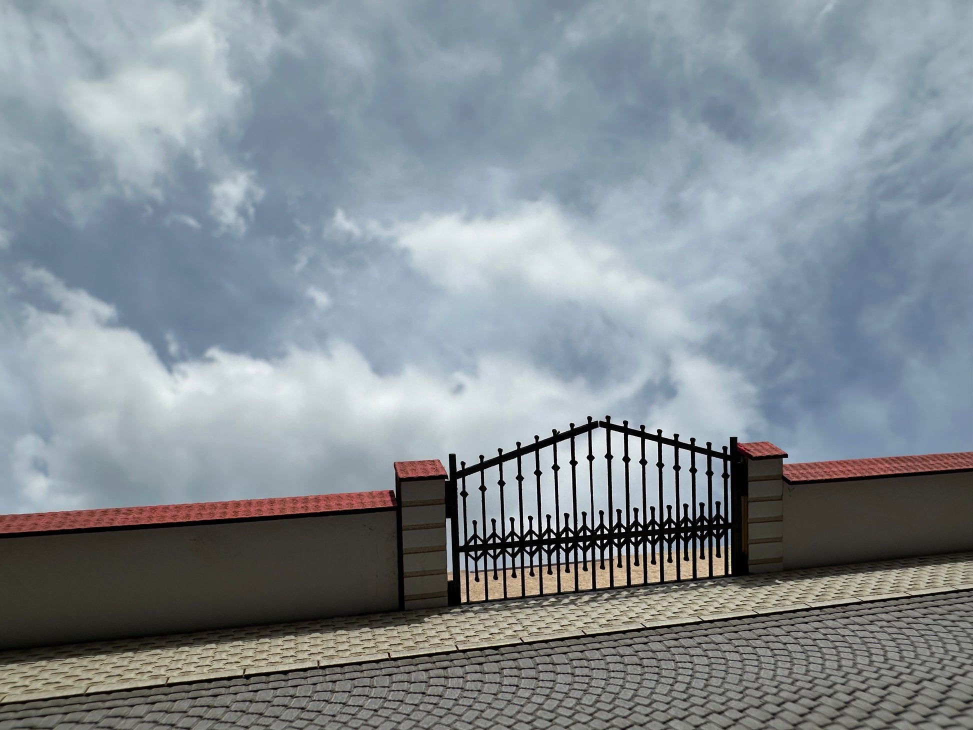 Mauer mit Ziegeldeckung und Metalltor H0 1:87
